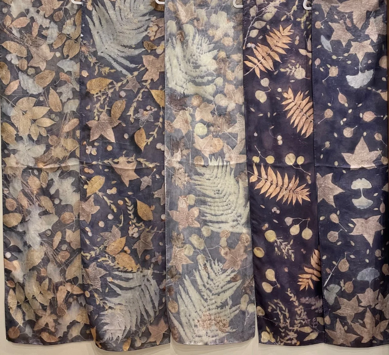 “Goddesses of the Woods” Banners. 2019, eco-printing on silk. Each is 8’ h x 24” x.